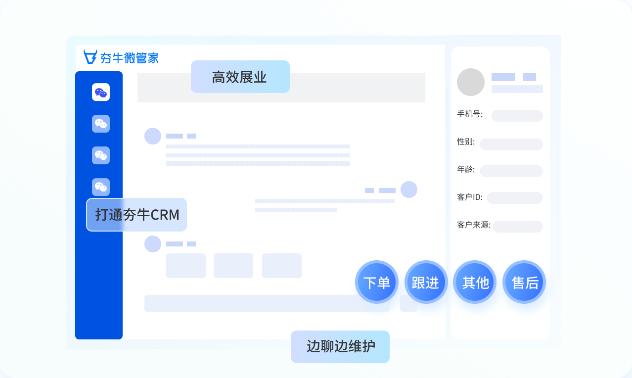 好友转客户,客户下单,客户跟进等操作无需切换CRM